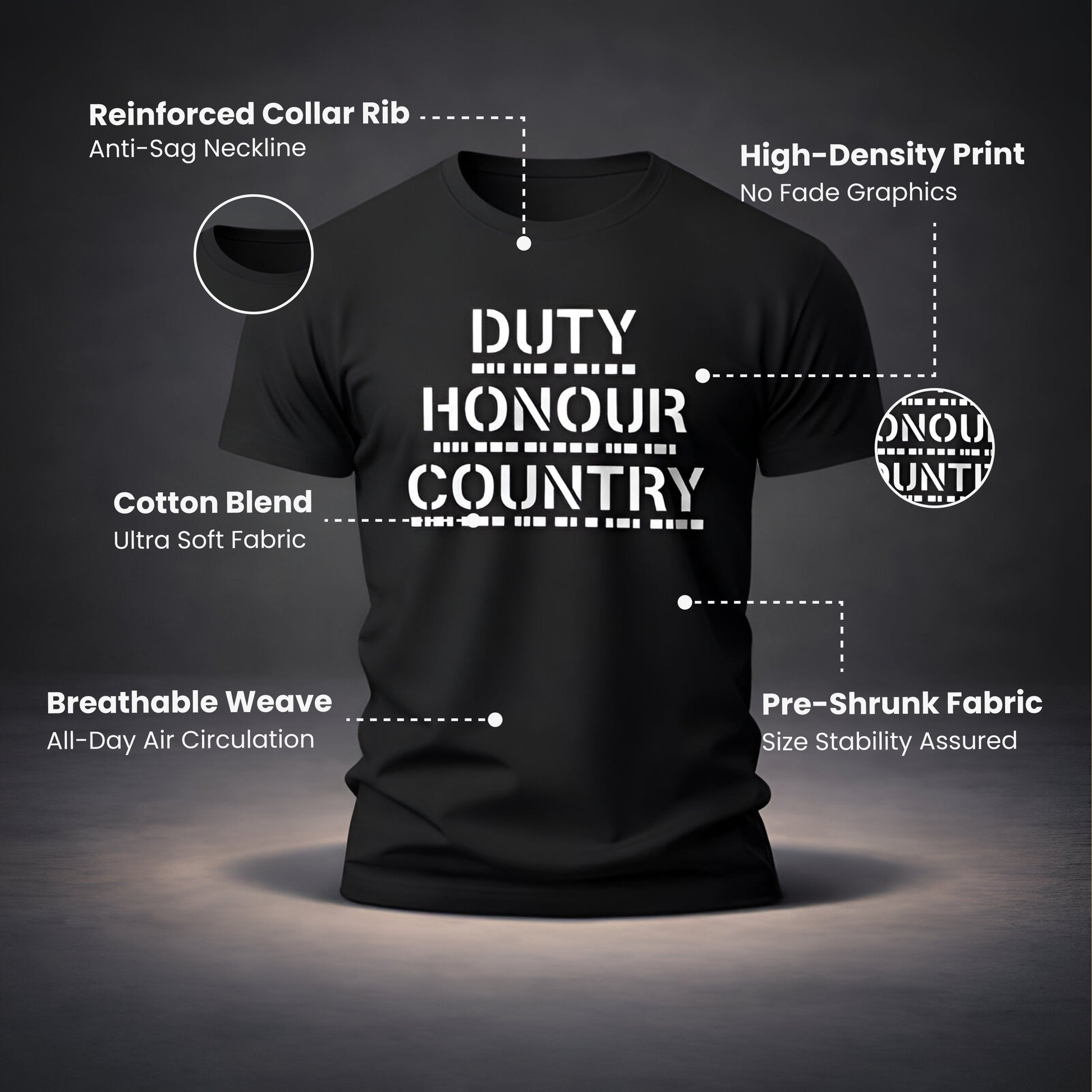 This oversized t-shirt makes a clear and commanding statement with DUTY. HONOUR. COUNTRY. boldly printed in Morse code. Designed for those who carry their values with pride, it’s more than just a graphic tee—it’s a tribute to purpose, discipline, and dedication. Crafted from premium cotton for all-day comfort and a clean streetwear vibe.